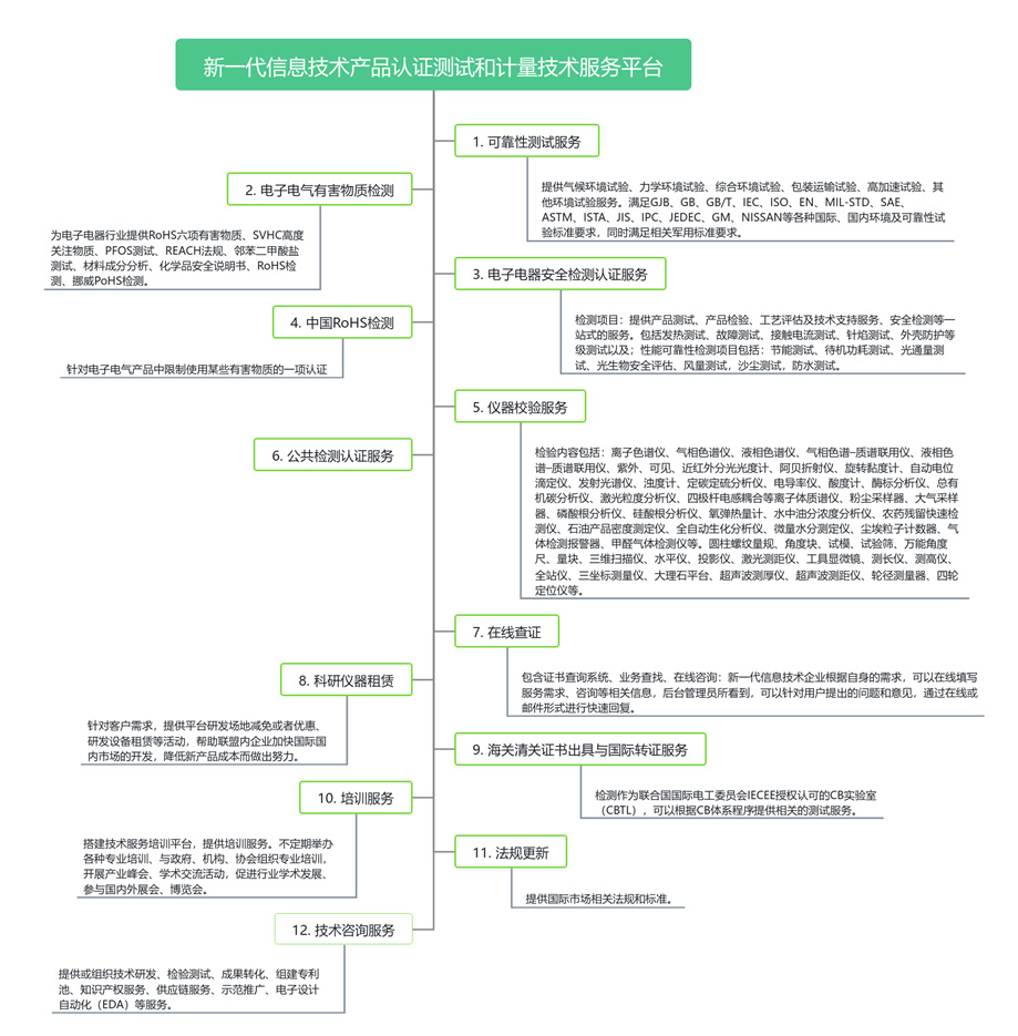 衡創(chuàng)新一代信息技術(shù)平臺通過打造"中國-挪威","中國-巴西",(中國-墨西哥)三大國家聯(lián)合實驗室,導入阿米巴+合伙人經(jīng)營模式,在全球范圍內(nèi)招才引智,以項目為導向,打造類孵化器式公共技術(shù)服務(wù)平臺,開展高端電子信息等產(chǎn)品產(chǎn)學研聯(lián)合,大型儀器共享,型式試驗,研發(fā)整改對策,法規(guī)貿(mào)易技術(shù)壁壘解讀,標準起草,測試儀器和輔助裝備研發(fā),檢測工藝和檢測技術(shù)開發(fā),認證測試,計量校準,國際轉(zhuǎn)證服務(wù)、驗貨服務(wù)、工廠審核,供應(yīng)鏈管控服務(wù)、性能與可靠性測試、環(huán)境與健康檢測。