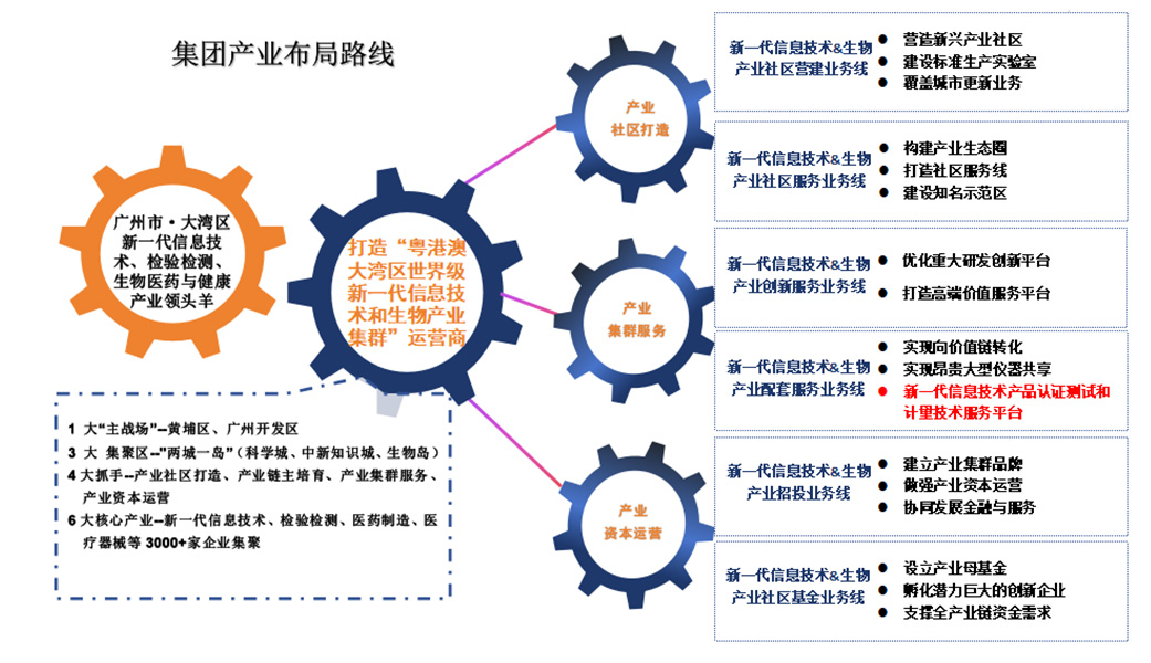 作為廣州開發(fā)區(qū)最早成立的區(qū)屬一級企業(yè)之一,高新區(qū)集團扎根于黃埔區(qū)、廣州開發(fā)區(qū),立足于"兩軸(建設(shè)、服務(wù))四輪(開發(fā)、城更、產(chǎn)服、金融)驅(qū)動產(chǎn)業(yè)(新一代信息技術(shù)、檢驗檢測、醫(yī)療器械、生物醫(yī)藥等)在高質(zhì)量發(fā)展道路上邁向新征程"的經(jīng)營發(fā)展理念,定位于產(chǎn)業(yè)全周期的健康生活引領(lǐng)者、區(qū)域全覆蓋的美好城市建設(shè)者、服務(wù)全方位的創(chuàng)新社區(qū)締造者,有序推進項目建設(shè)和現(xiàn)代服務(wù)的同時,積極加強與國內(nèi)、國際創(chuàng)新要素密切聯(lián)動、優(yōu)勢資源合理配置,打造新一代信息技術(shù)、檢驗檢測、生物醫(yī)藥與健康產(chǎn)業(yè)新高地,爭創(chuàng)產(chǎn)業(yè)先導區(qū),圍繞"三大板塊,六條業(yè)務(wù)線"打造粵港澳大灣區(qū)世界級產(chǎn)業(yè)集群運營商。